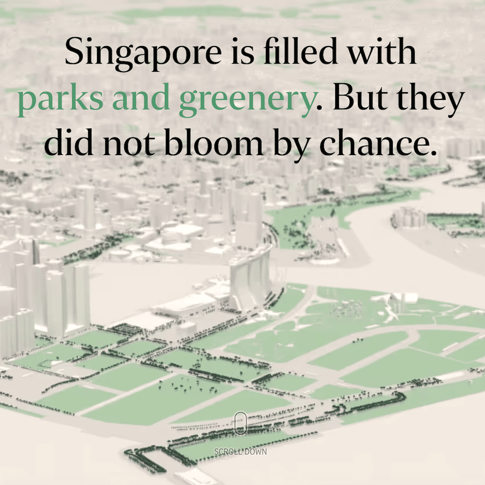 And as if by coincidence, in contrast here's a scrolly piece marking Singapore's 60th year of independence looking at the history of how it was transformed into a 'Garden City' - "Singapore is filled with parks and greenery. But they did not bloom by chance.".