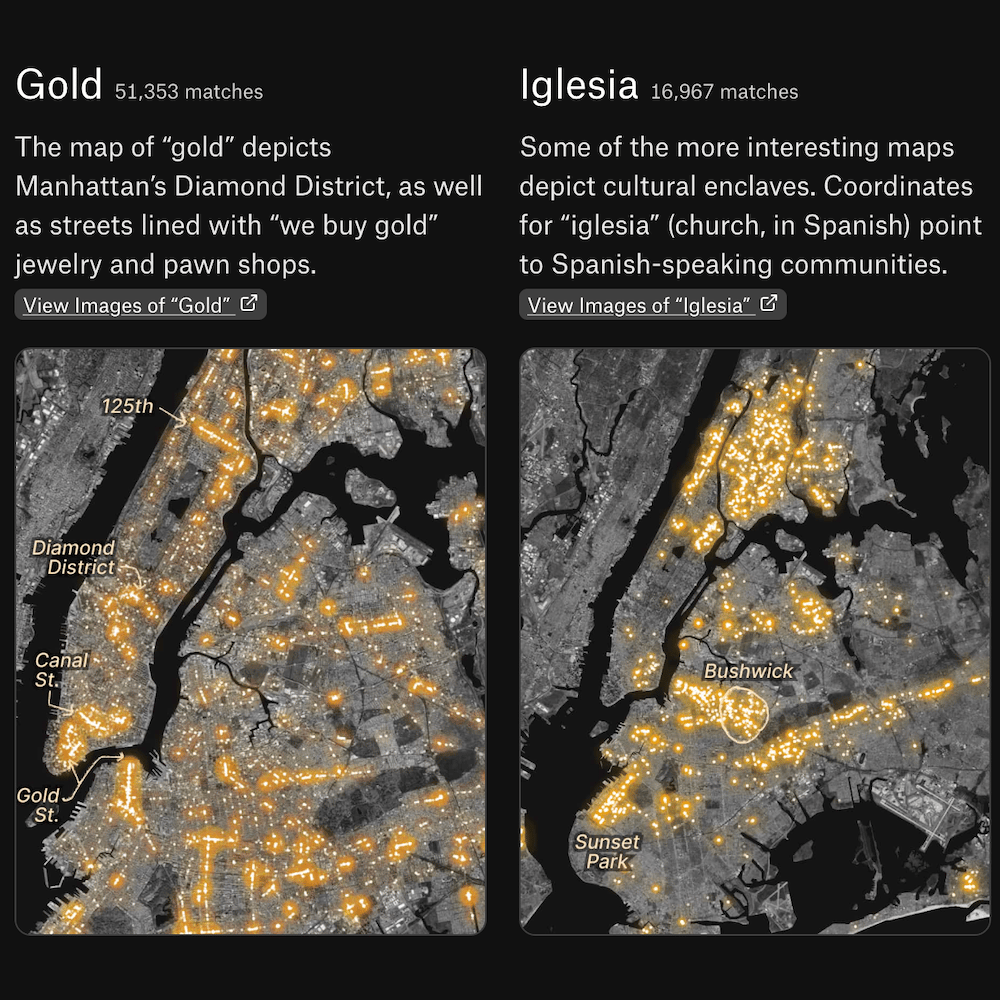 "What if you could search every visible word on New York City’s streets?" Well, The Pudding did, thanks to a search Engine developed by media artist, Yufeng Zhao, built on a unique dataset of transcribed text fed by millions of publicly-available panoramas from Google Street.