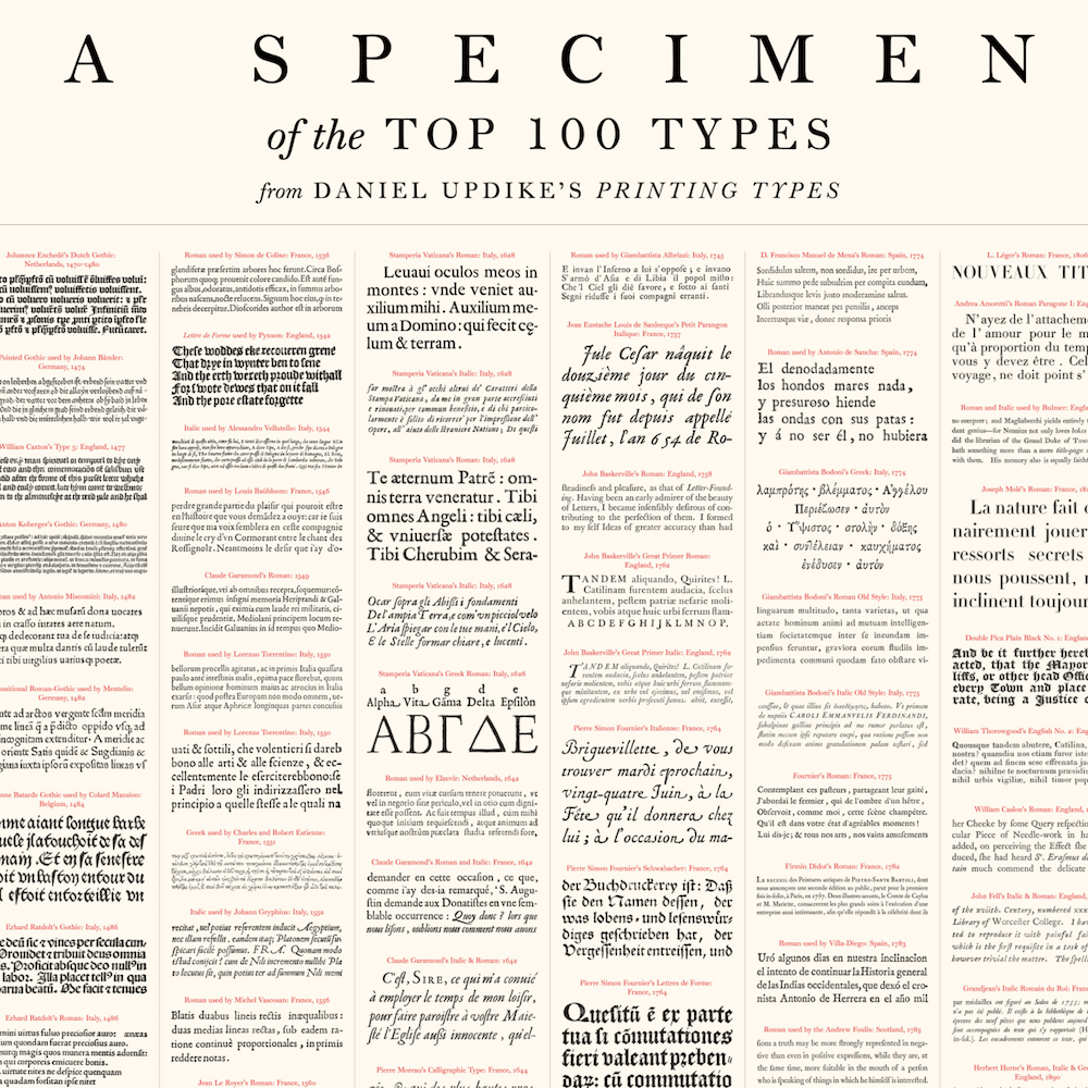 You'd be proud if you had accomplished even just one of these mega-ambitious, gorgeous design preservation/enhancement projects. Nicholas pumps them out every few months! We should never take the frequency of his brilliance for granted. This one involved "a months-long treasure hunt for 1,200+ books spanning 450+ years to digitize Daniel Updike’s Printing Types from 1922, detailing the history of printing and typography. Made a nifty poster too." As ever the companion making-of post is also worthy of awards.