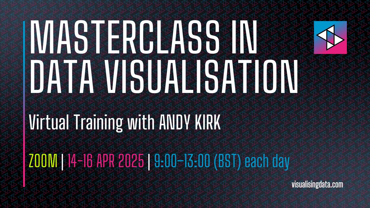 I've also added to my schedule with a new virtual public dataviz course taking place online over 14th, 15th and 16th April (9:00am to 1:00pm BST each day). Visit this link for details about the course, the pricing, and information about how to register. I've told you once but I will tell you twice: newsletter subscribers can have a 10% discount by using the promo code [SUBSCRIBERS ONLY] at checkout.
